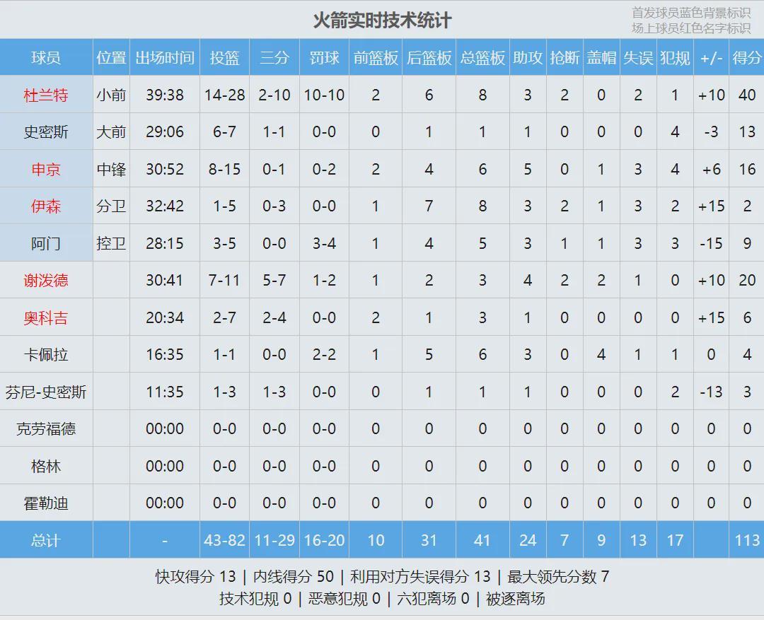 乌度卡今天最大的转变,就是最后时刻把谢泼德留在场上。此役谢泼德替补出战30分41秒,投篮11中7,三分7中5,罚球2中1,砍下20分3板4助2断2帽,正负值+12。阿门上场时间减少,只打了28分钟,5中3拿到9分5板3助3失误。