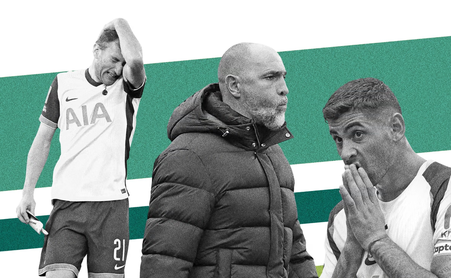上周,他还把北伦敦德比的失利称作“过程的一部分”,认为这场败仗能点醒球员,让他们明白自身职责。本周,他却只是含糊地说必须忘掉这场比赛、向前看。执教热刺仅仅一周,他仿佛就已被击垮。